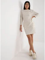 Dámské šaty LO SK LK 259.08 Béžová s bílou - Rue Paris