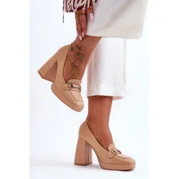 Módní lodičky jsou posazeny na masivním podpatku v podobě vyššího bloku a jemné platformy. Jsou vyrobeny z ekologické kůže. Navíc mají na přední straně pásek s ozdobou. Tyto lodičky mají zpevněný podpatek. Měkká stélka je rovněž vyrobena z ekokůže. Tento model by si měl najít místo ve vašem šatníku!