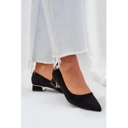 Ekologické semišové lodičky na nízkém podpatku jsou elegantní nabídkou pro ženy, které oceňují pohodlí a styl. Špičatý nos dodává rafinovaný charakter a zlatý prvek na podpatku přidává jemný lesk a zdůrazňuje celkový dojem. Nízký podpatek zajistí pohodlí po celý den a skvěle ladí jak s každodenními, tak s elegantními outfitmi. Je to ideální volba pro každou příležitost, spojující moderní design s klasickou elegancí.