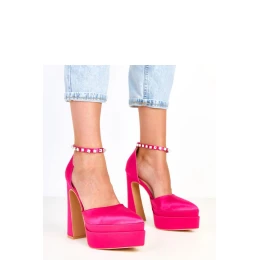 Elegantní dámské lodičky vyrobené z jemného saténu, které okouzlují elegancí a výjimečným zpracováním. Štíhlý špičatý nos a ozdobný pásek s přezkou osázený zirkony dodávají botám lesk a ženský charakter. Model je umístěn na stabilním 15centimetrovém sloupcovém podpatku a s 5centimetrovou platformou, co opticky zúží postavu a zároveň zajistí pohodlí nošení. Vnitřek vyrobený z ekologické kůže zaručuje pohodlí. Jedná se o efektní a elegantní lodičky, ideální na speciální příležitosti, večerní vycházky nebo slavnostní události, kde záleží na stylu, eleganci a troše lesku.