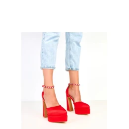 Elegantní dámské lodičky vyrobené z jemného saténu, které okouzlují elegancí a jedinečným zpracováním. Úzký špičatý nos a ozdobný pásek s přezkou osazenými zirkony dodávají botám lesk a ženský charakter. Model je umístěn na stabilním 15centimetrovém sloupkovém podpatku a 5centimetrové platformě, co opticky zjemňuje postavu a zároveň zajišťuje pohodlí nošení. Vnitřek je vyroben z ekologické kůže, což zaručuje pohodlí. Jsou to efektní a elegantní lodičky, ideální na speciální příležitosti, večerní výlety nebo slavnostní události, kde záleží na stylu, eleganci a troše lesku.