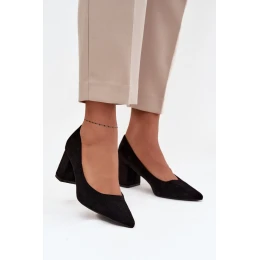 Dámské lodičky z ekokožešiny jsou ideálním spojením elegance a pohodlí. Vyrobené z měkkého a příjemného materiálu vypadají elegantně a nadčasově. Špičaté špičky opticky zjemňují nohu, a stabilní podpatek typu sloupek přidává několik centimetrů na výšce, zajišťující zároveň pohodlí během celého dne. Jedná se o univerzální model, který se skvěle hodí jak do kanceláře, tak na speciální příležitosti. Skvěle ladí s šaty, sukněmi nebo elegantními kalhotami, dodávajíce outfitu ženský charakter.