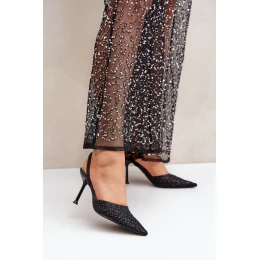 Lodičky S Otevřenou Patou Ozdobené Leskem Černé Berilae