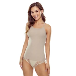 Dámské žebrované viskózové tričko na tenkém ramínku.