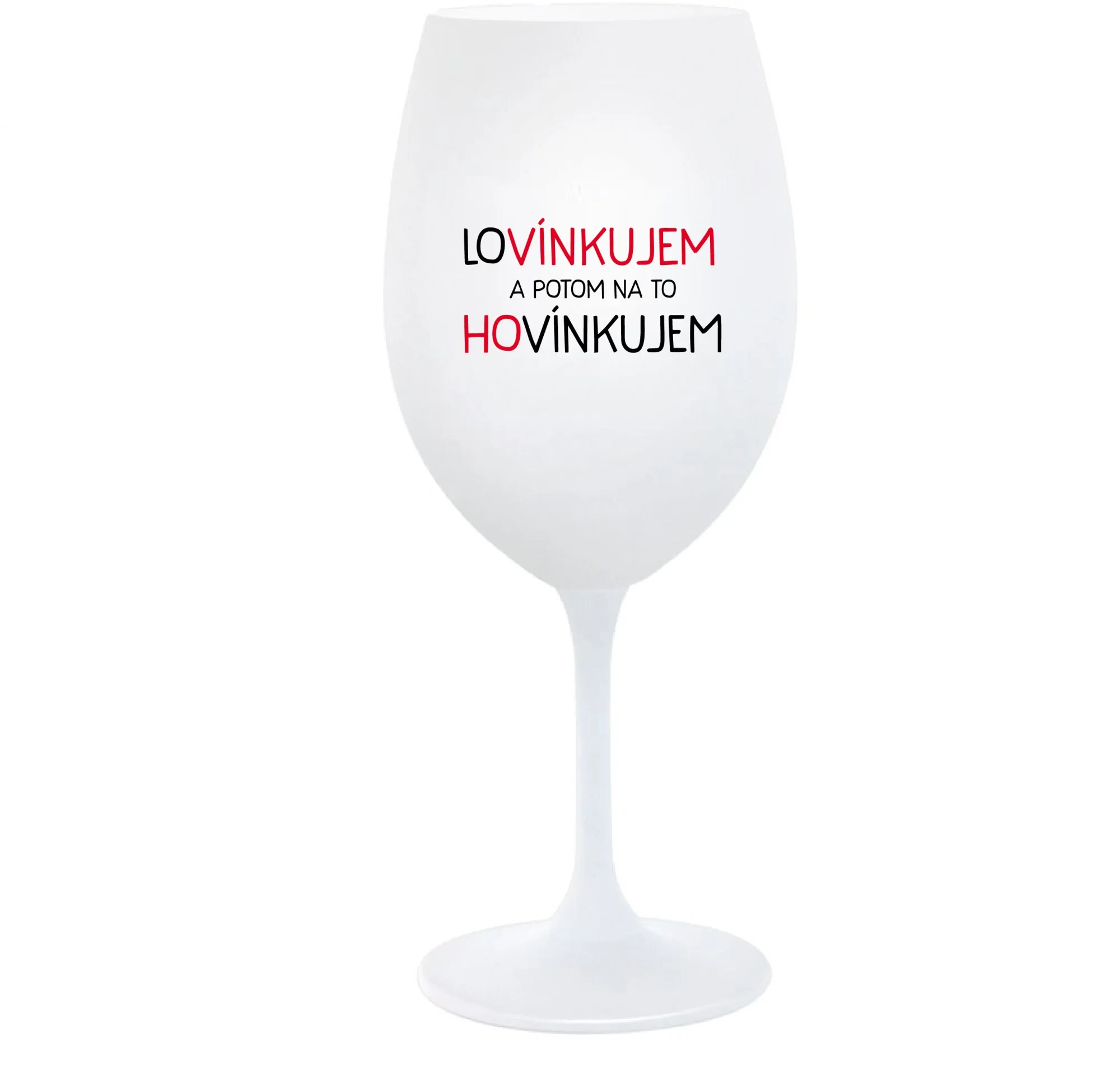 LOVÍNKUJEM A POTOM NA TO HOVÍNKUJEM - biely pohár na víno 350 ml