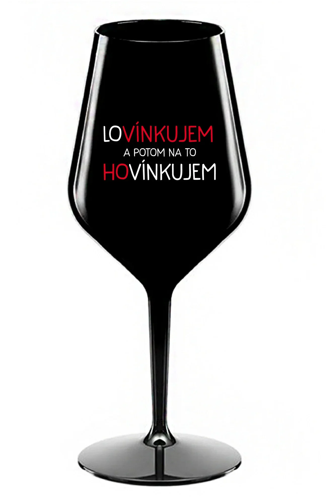LOVÍNKUJEM A POTOM NA TO HOVÍNKUJEM - čierny nerozbitný pohár na víno 470 ml