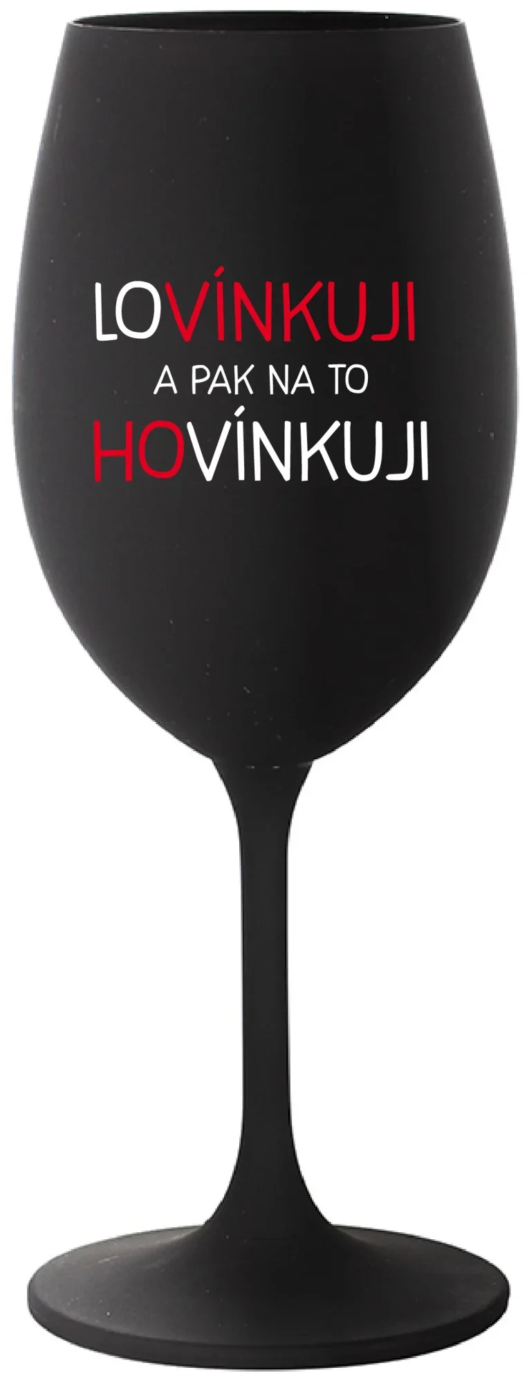 LOVÍNKUJI A PAK NA TO HOVÍNKUJI - černá sklenice na víno 350 ml
