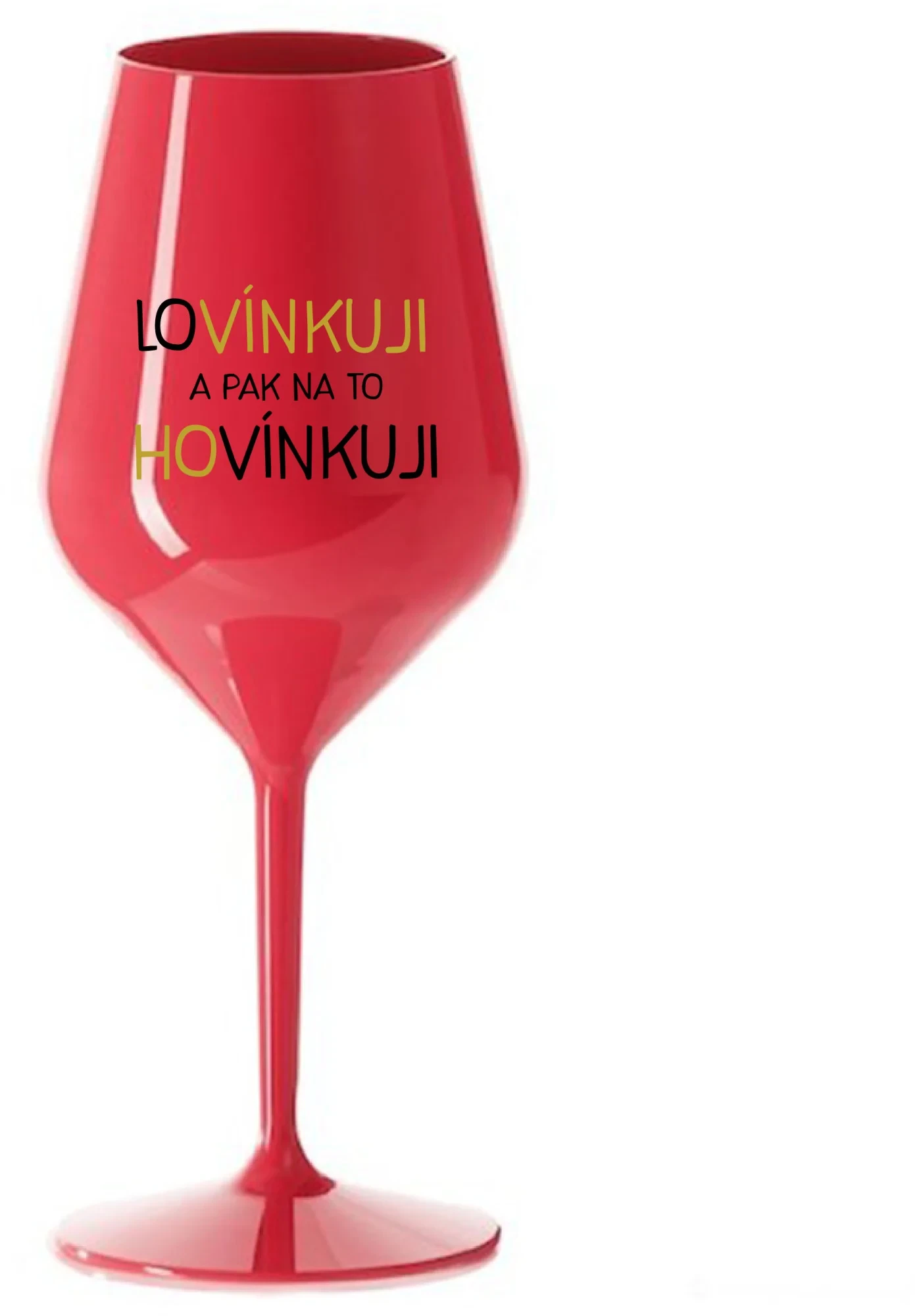 LOVÍNKUJI A PAK NA TO HOVÍNKUJI - červená nerozbitná sklenice na víno 470 ml