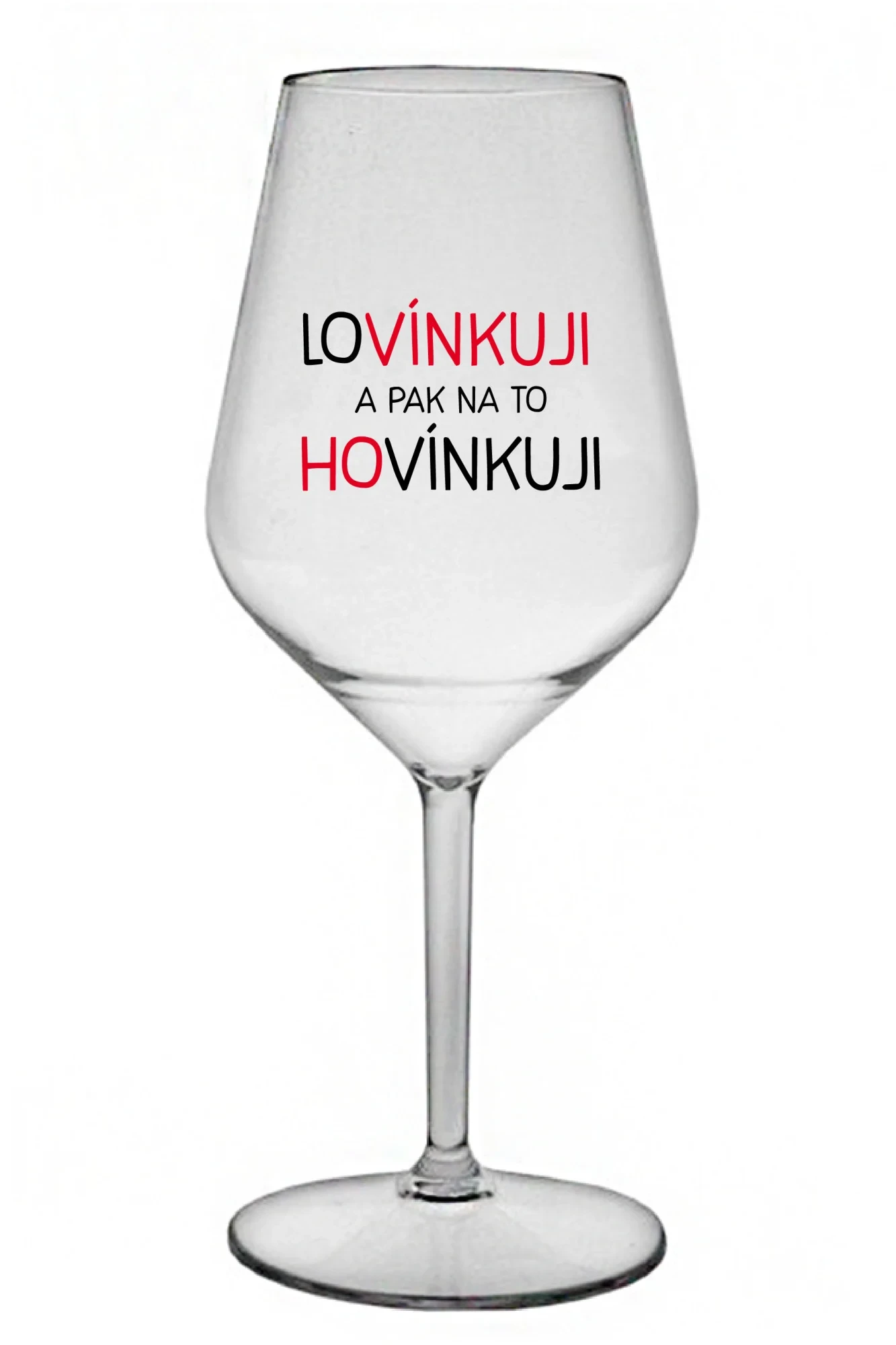 LOVÍNKUJI A PAK NA TO HOVÍNKUJI - čirá nerozbitná sklenice na víno 470 ml