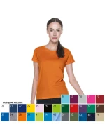 Dámské tričko s krátkým rukávem v chrpové barvě je vyrobeno z mimořádně příjemného a hladkého materiálu single jersey klasického střihu. Materiál byl podroben enzymatickému praní, takže je bez nerovností. Má silikonovou úpravu materiálu, díky které je měkký a příjemný na dotek. Výstřih je zakončen dvouvrstvým žebrováním s elastanem, které zajišťuje delší životnost. Výstřih a ramena s kontrastní zpevňující a stabilizující páskou, která má pozitivní vliv na odolnost švů. Boky beze švů pro lepší komfort při nošení a poskytující více možností potisku. Tričko má dvojité husté švy, na které byly použity nejkvalitnější nitě.