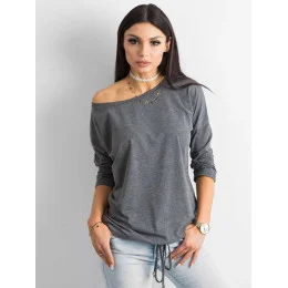 Tmavě šedá volná dámská halenka se zavazováním na spodním okraji (4691)