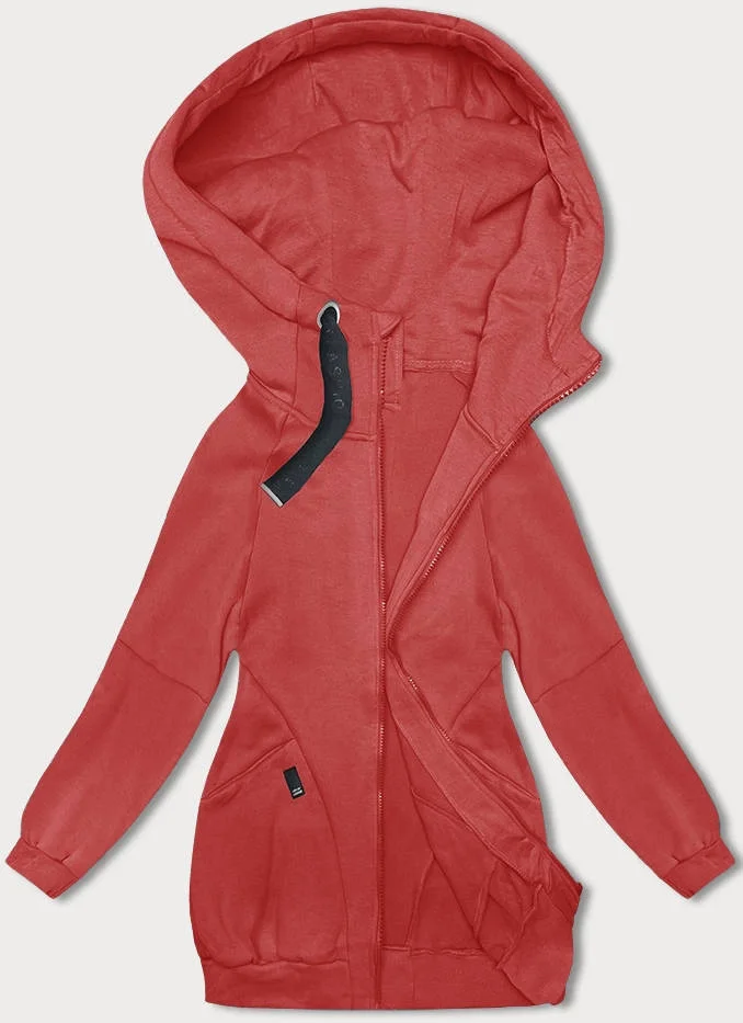 Červená volná dlouhá dámská mikina se stahovacími lemy (AMG-332A)
