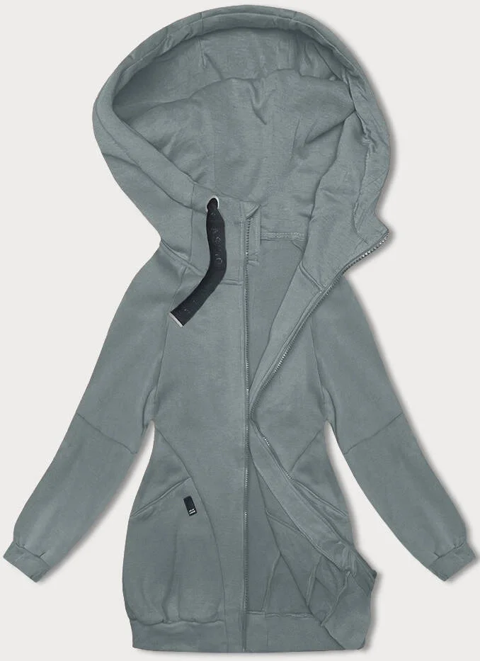 Šedozelená volná dlouhá dámská mikina se stahovacími lemy (AMG-332A)