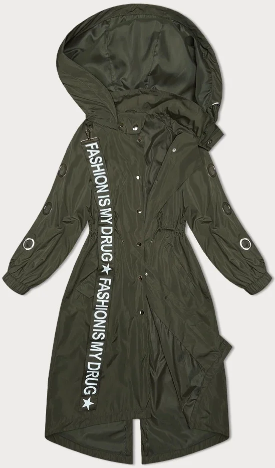 Volná dlouhá bunda v khaki barvě s kapucí (TR982)