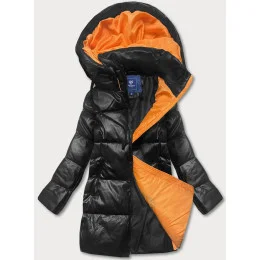 Černo-oranžová volná dámská bunda z eko kůže (ag6-20b)