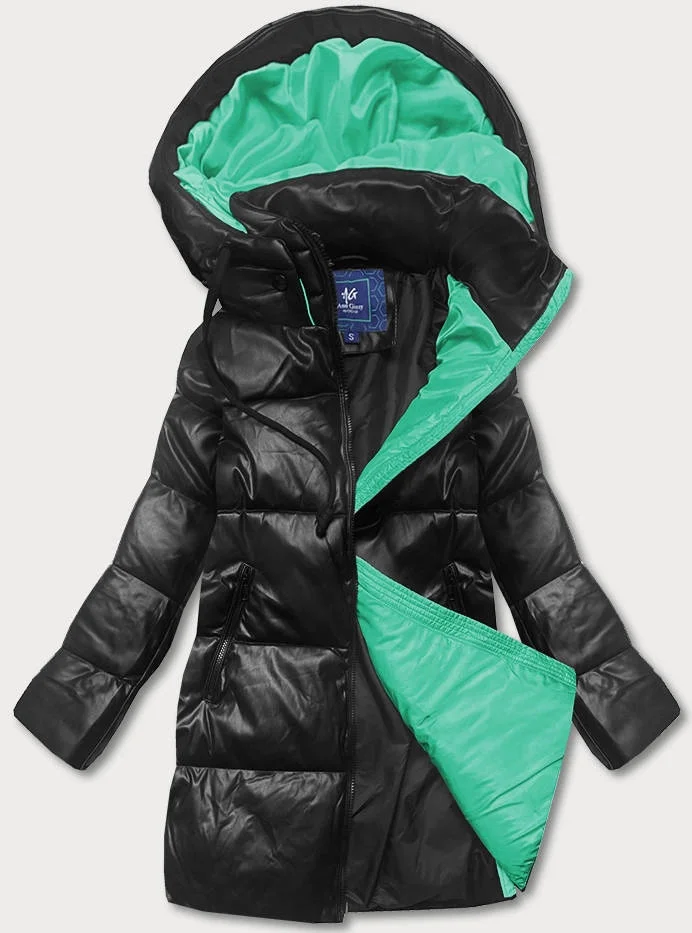 Černo-zelená volná dámská bunda z eko kůže (ag6-21)