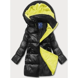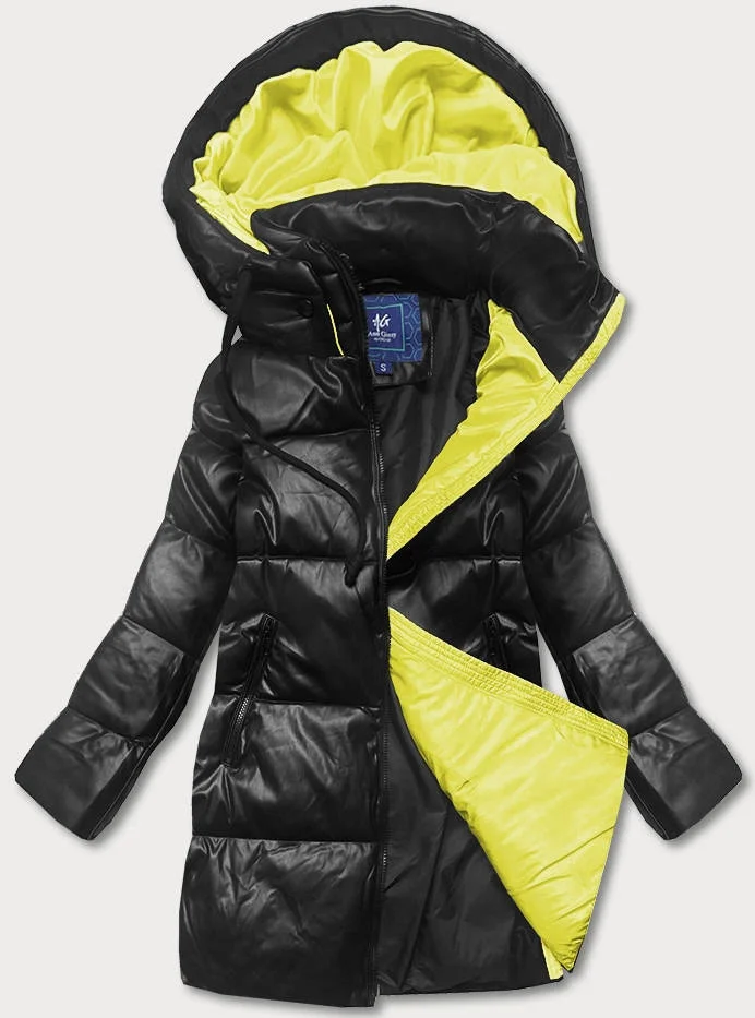 Černo-žlutá volná dámská bunda s eko kůže (ag6-21)