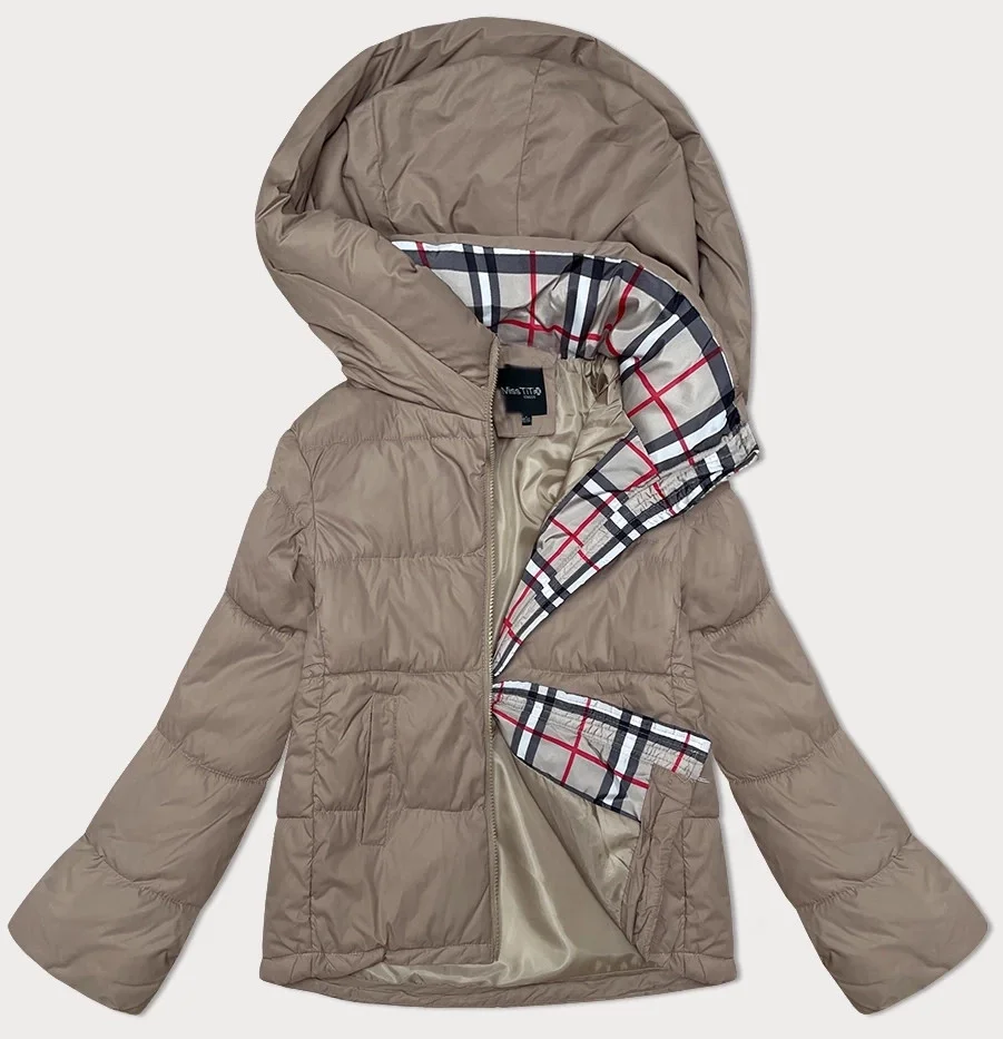 Volná béžová dámská bunda s kapucí Miss TiTi (2360)