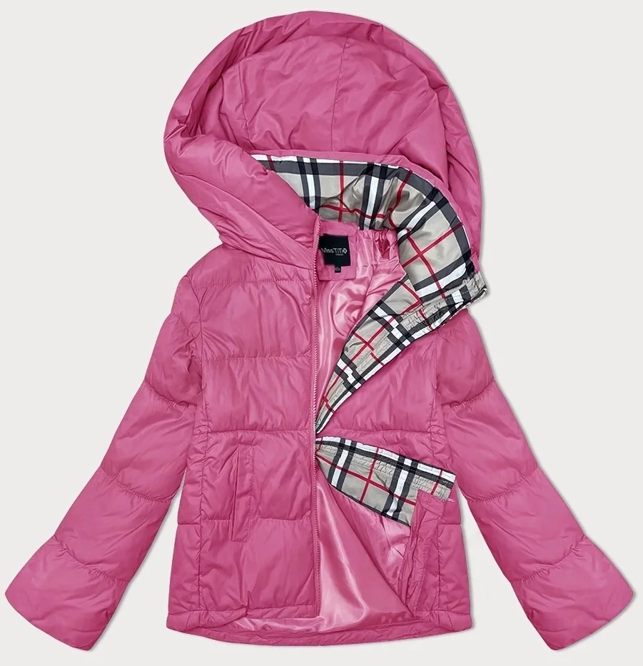 Volná růžová dámská bunda s kapucí Miss TiTi (2360)