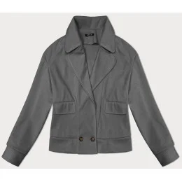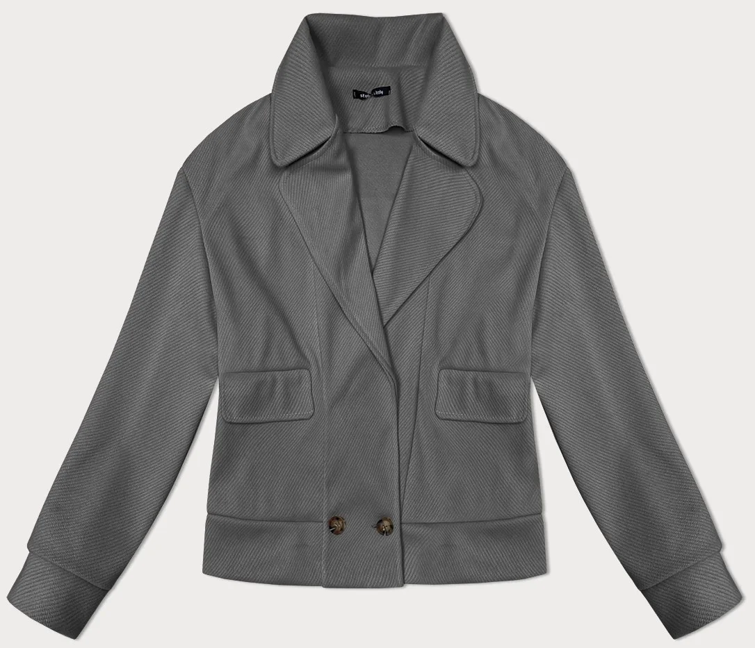 Volná šedá pruhovaná žebrovaná bunda s límcem (244003)