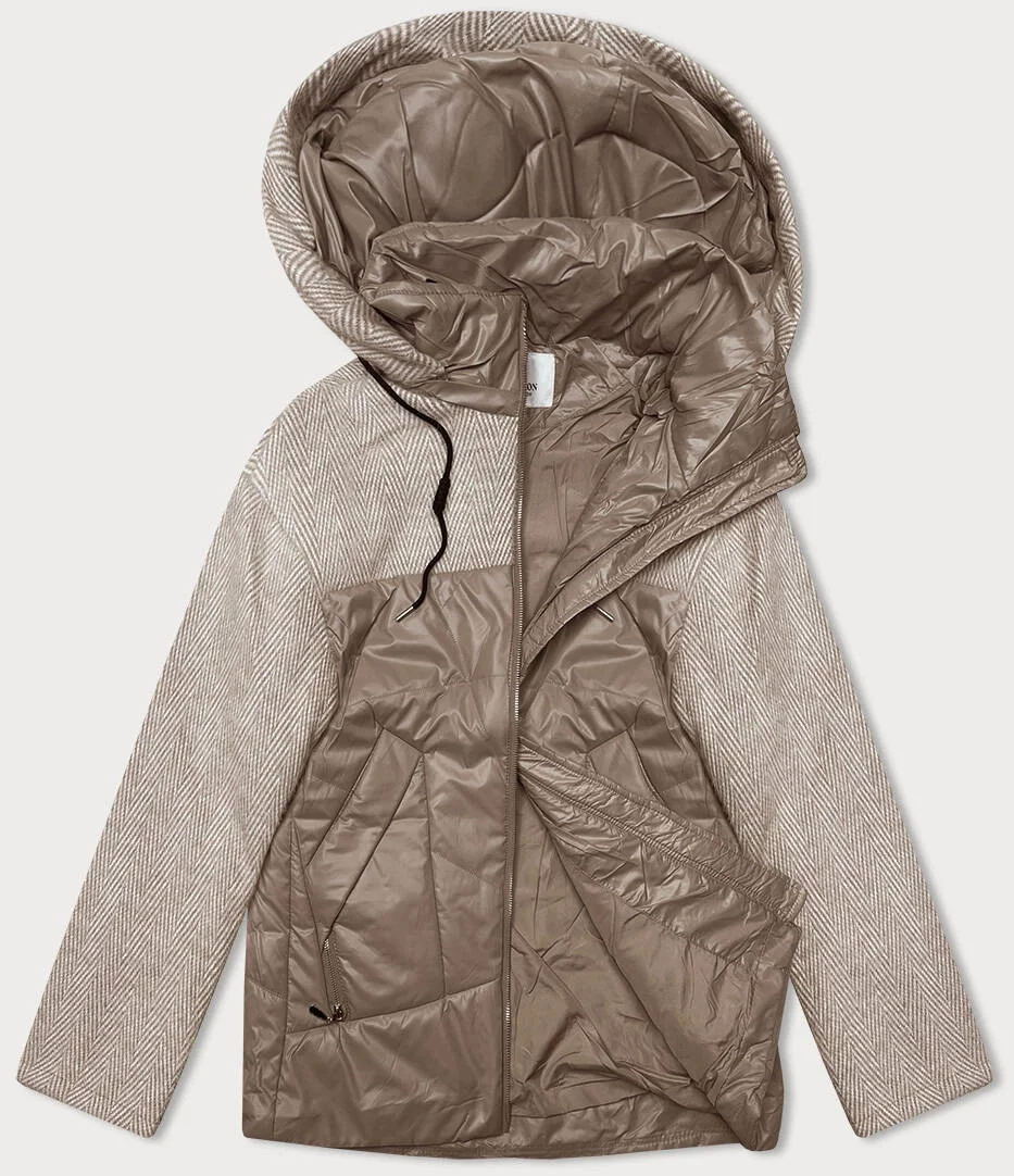 Velbloudí-melanžová volná bunda s odepínací kapucí Vaston (SJ218-036#)