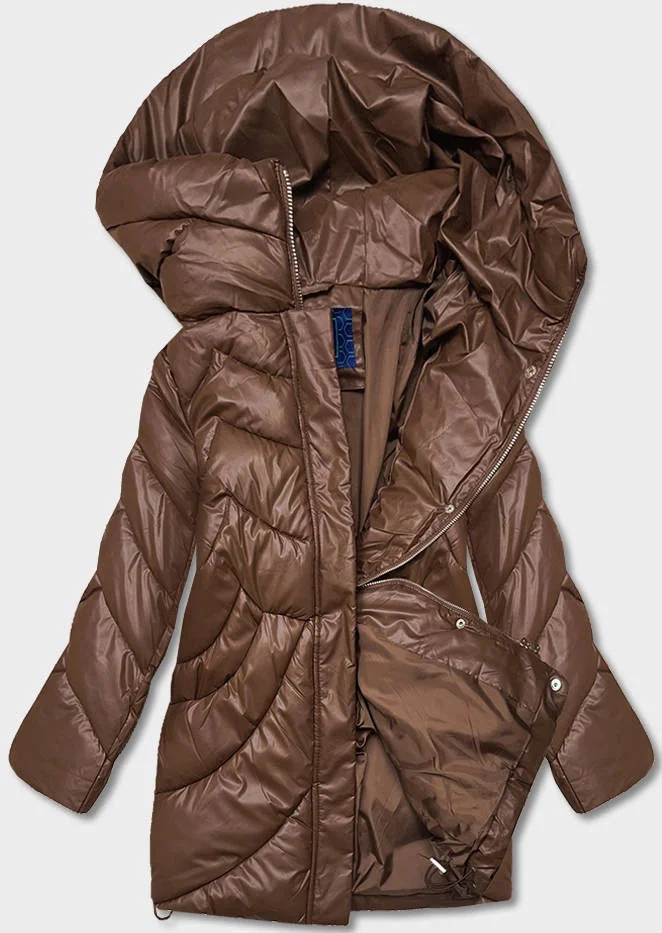 Hnědá volná dámská zimní bunda z ekologické kůže (AG2-J90)