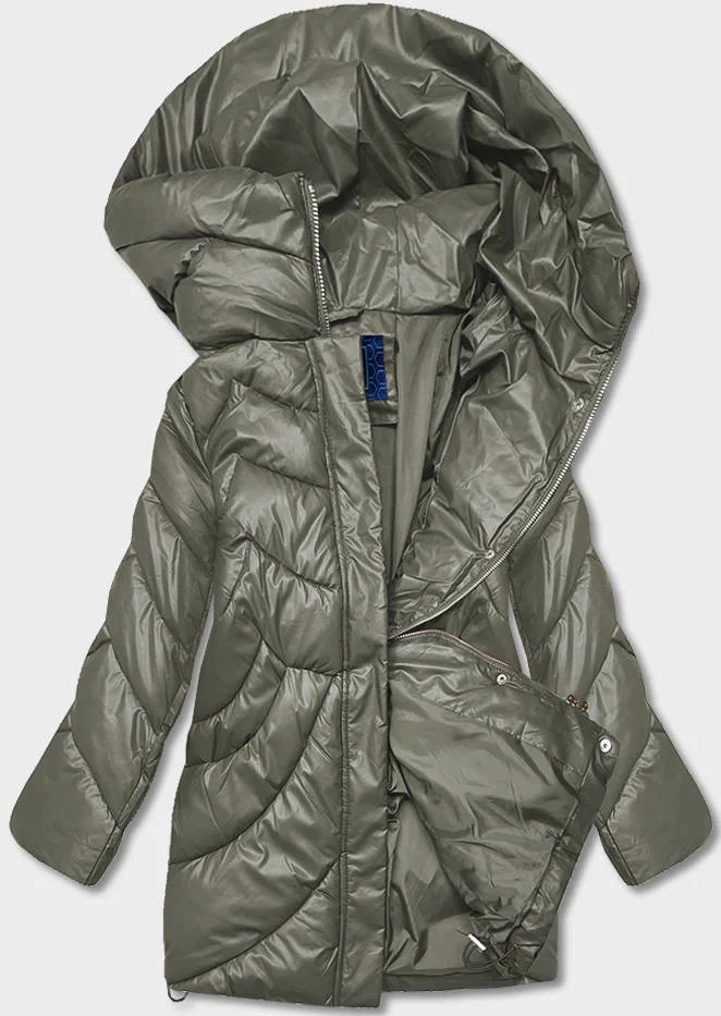 Volná dámská zimní bunda v khaki barvě z ekologické kůže (AG2-J90)
