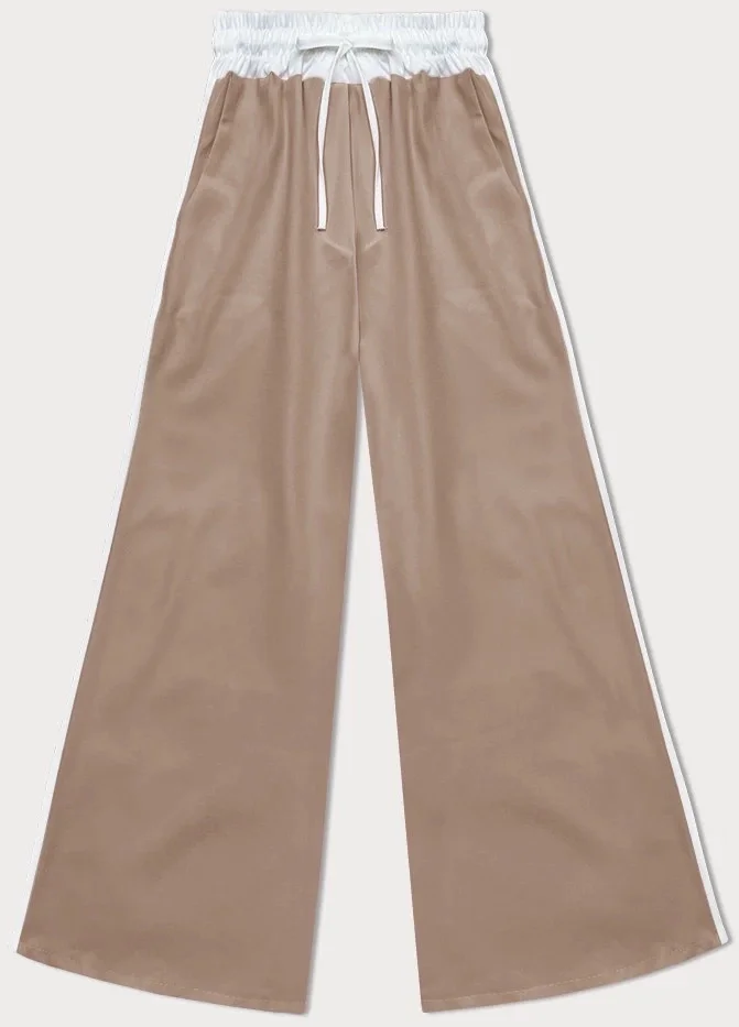 Volné dámské kalhoty v karamelové barvě s lampasy (764ART)