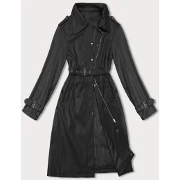 Volný černý dámský kabát z ekologické kůže J Style (11Z8101)