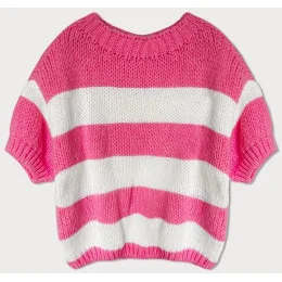Volný dámský pruhovaný svetr v neonově růžové barvě (761ART)