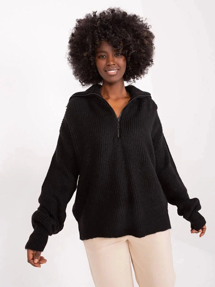 Černý volný dámský svetr s rozepínacím rolákem (0374)