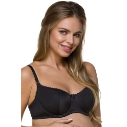 Podprsenka značky Lupo, model 1381, s drátky, které podporují a tvarují prsa. Výrobek má nastavitelná ramínka, která nelze odepnout. Plastové háčky na ramínkách. Zapínání na háčky a očka. Místo zapínání: na zádech. 2 řady svislých výšivek. 3 úrovně vodorovných výšivek. Výrobek je vyroben ze 70 % polyamidu, 15 % elastanu, 15 % bavlny. Těhotenské oblečení. Vlastnosti výrobku: měkký mateřský kojící soft. Prádlo má odepínací košíček.