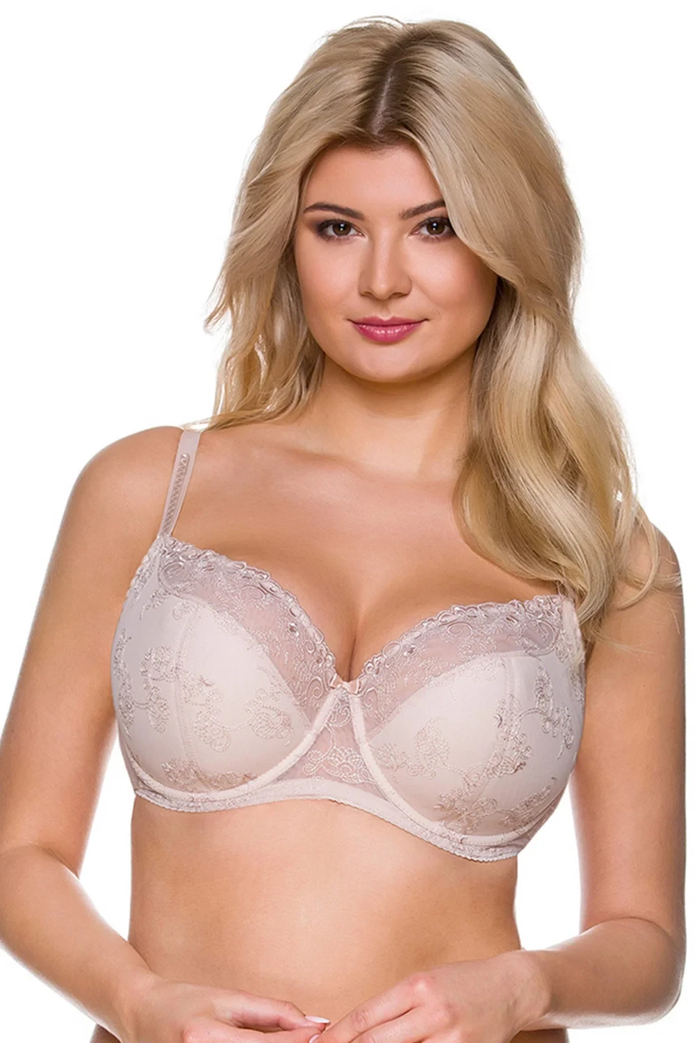 Podprsenka značky Lupo, model 146, s drátky, které podporují a tvarují prsa. svislé kostice na bocích. nastavitelná ramínka, neodnímatelná. plastové háčky na ramínka. zapínání na háčky. zapínání: na zádech. dvě řady svislých háčků. čtyři úrovně vodorovných háčků. vyrobeno ze 70 % polyamidu, 20 % elastanu, 10 % bavlny. boky vyztužené látkou. dámské oblečení.