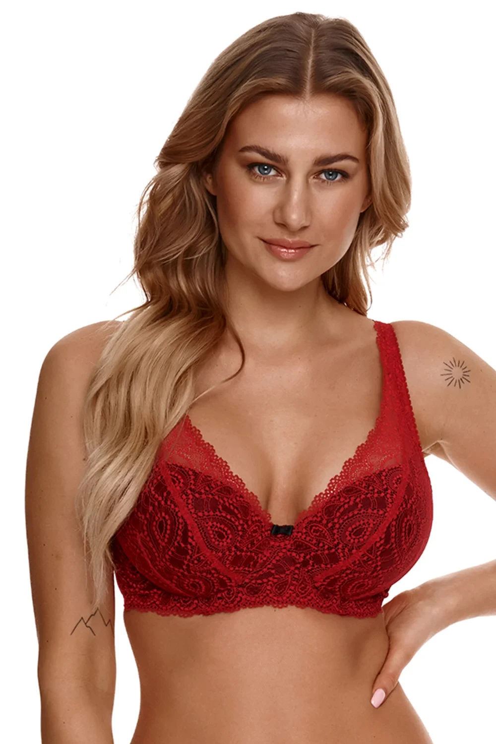 Podprsenka značky Lupo, model 2311, s drátky, které podporují a tvarují prsa. svislé kostice na bocích. nastavitelná ramínka, neodnímatelná. kovové háčky na ramínka. zapínání na háčky. zapínání: na zádech. dvě řady svislých háčků. tři úrovně vodorovných háčků. výrobek je vyroben z 85 % polyamidu, 15 % elastanu. dámské oblečení. výrobek má tvarovaný košíček.