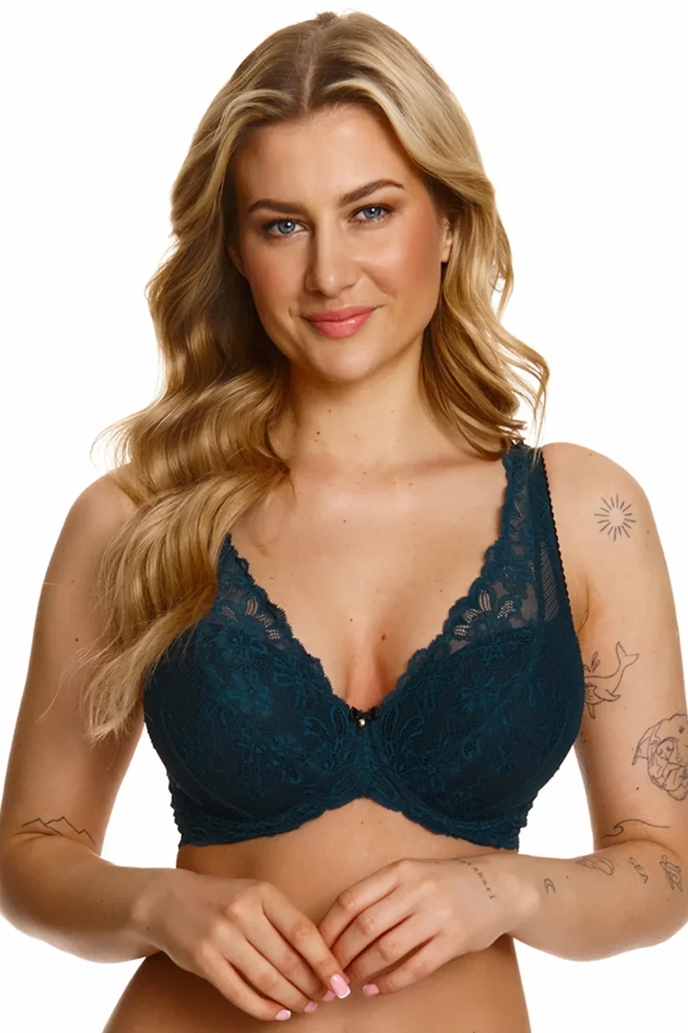 Podprsenka značky Lupo, model 2408, s drátky, které podporují a tvarují prsa. Výrobek má nastavitelná ramínka bez možnosti odepnutí. Kovové háčky na ramínkách. Zapínání na háčky. Místo zapínání: na zádech. 2 řady svislých háčků. 4 úrovně vodorovných háčků. Výrobek je vyroben z 85 % polyamidu, 15 % elastanu. Dámský výrobek. Výrobek má tvarovaný košíček.