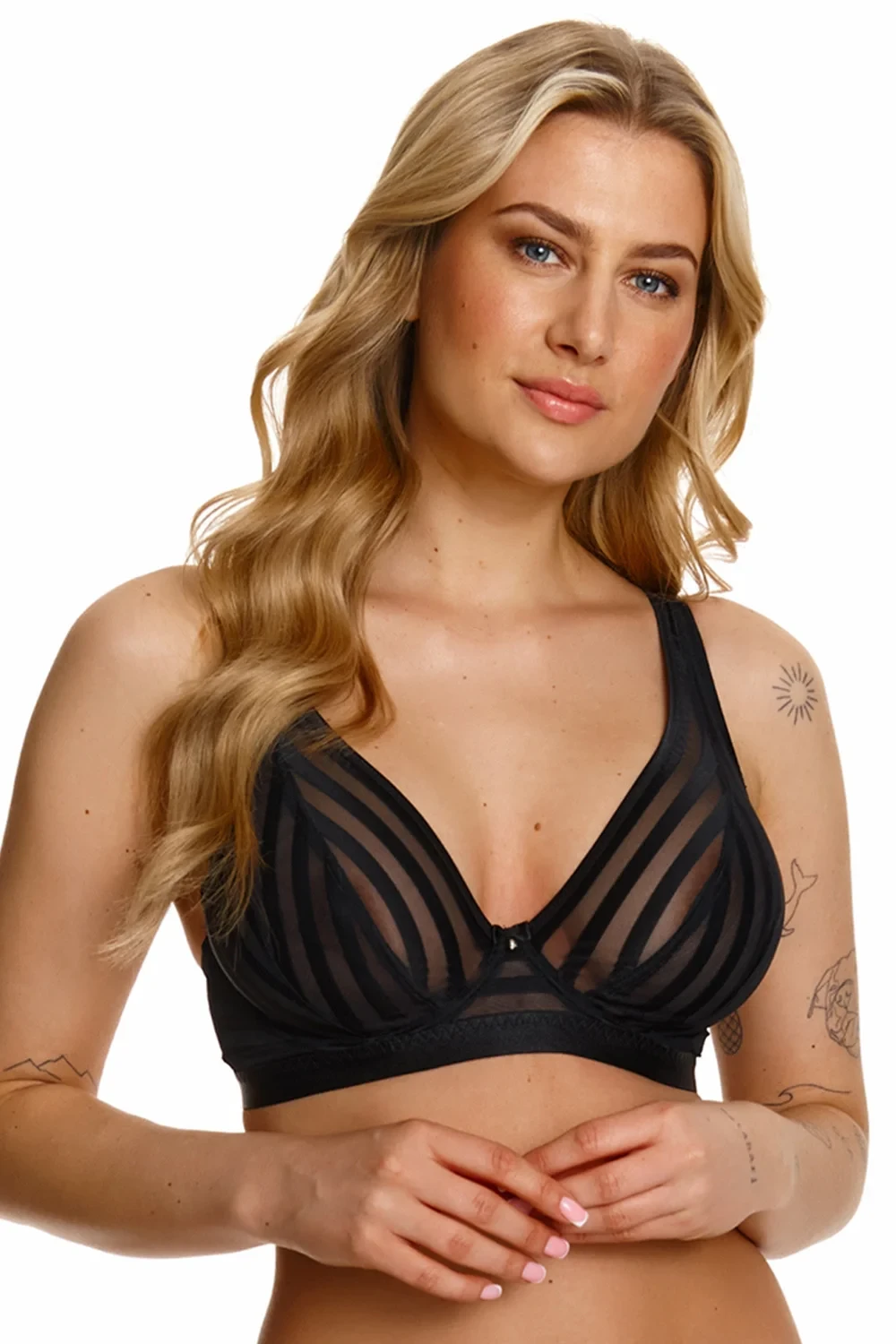 Podprsenka značky Lupo, model 2412, s drátky, které podporují a tvarují prsa. Výrobek má nastavitelná ramínka bez možnosti odepnutí. Zapínání na háčky. Místo zapínání: na zádech. 2 řady svislých výšivek. 4 úrovně vodorovných výšivek. Výrobek je vyroben z 85 % polyamidu, 15 % elastanu. Dámský výrobek. Vlastnosti výrobku: Podprsenky typu bralette.