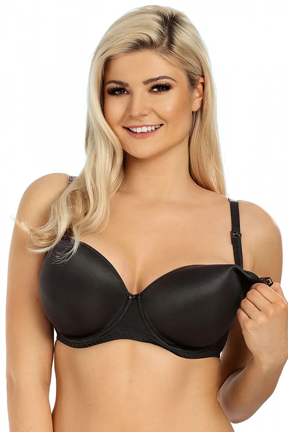 Podprsenka Lupo, model 3109, s drátky pro podporu a tvarování prsou, nastavitelná ramínka, plastové háčky na ramínkách, zapínání na háčky, tři řady svislých háčků, čtyři řady vodorovných háčků, 70 % polyamid, 20 % elastan, 10 % bavlna, těhotenské oblečení, odnímatelné košíčky, ženská.