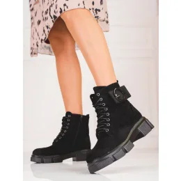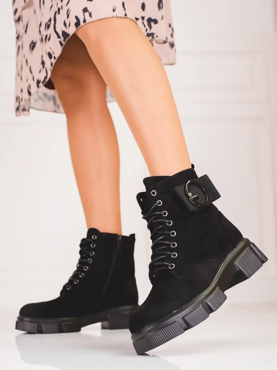 Luxusní černé dámské kotníčkové boty na plochém podpatku