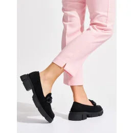 Dámské kožené mokasíny na platformě černé S.Barski LR720