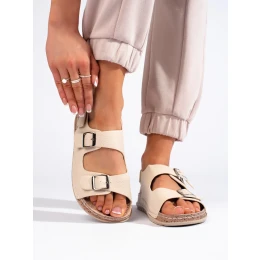 Luxusní hnědé sandály dámské na plochém podpatku