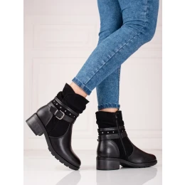 Luxusní kotníčkové boty černé dámské na plochém podpatku