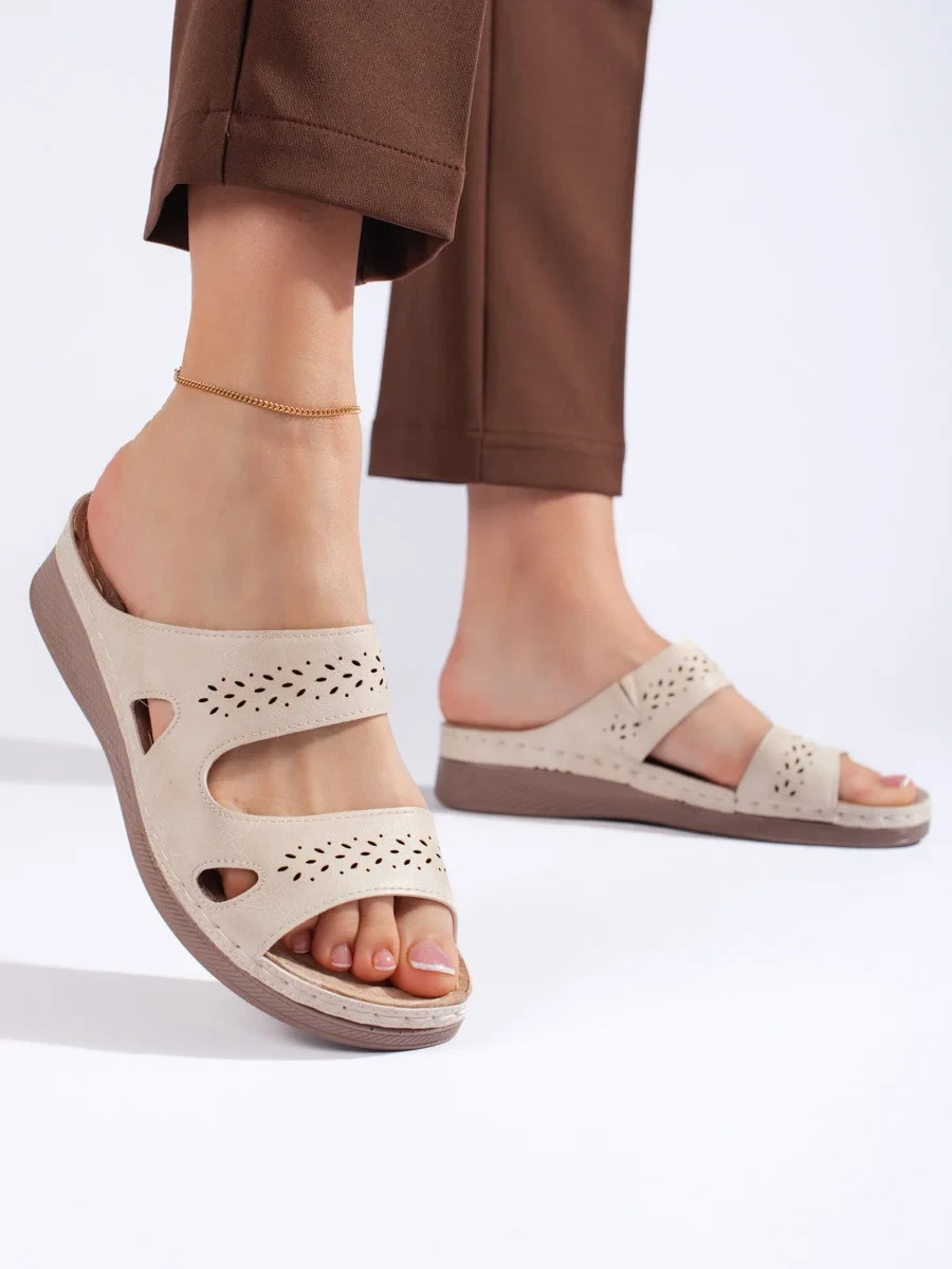 Luxusní nazouváky hnědé dámské na plochém podpatku