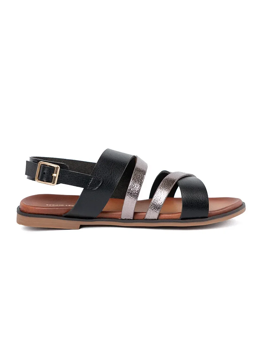 Luxusní sandály dámské černé na plochém podpatku