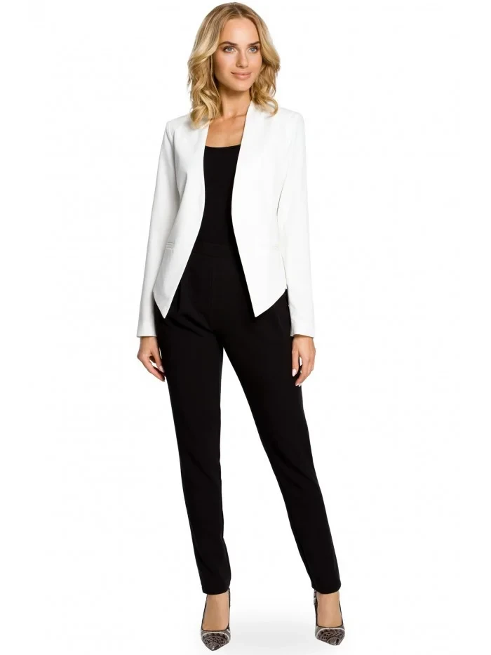 M031 Asymetrická bunda s dlouhými rukávy a límcem - barva ecru
