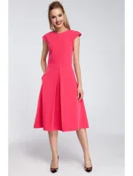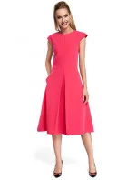 65 % polyester 30 % wiskoza 5 % elastan Leštěné a profesionální šaty v midi délce s obráceným záhybem upoutají pozornost svým vypasovaným živůtkem a trapézovými šaty.