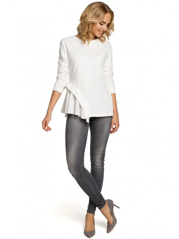 M333 Asymetrická vrstvená halenka - ecru barva