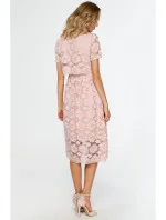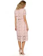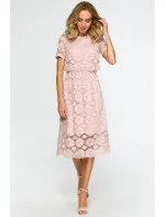 M405 krajkové midi šaty s výstřihem - růžové