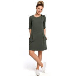 M422 Šaty se spadlým pasem a mašlí - vojensky zelené