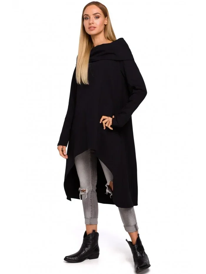 100% bavlna Tato dlouhá asymetrická tunika se širokým límcem se skvěle hodí k džínům a legínám a je naprostou nezbytností. PODROBNOSTI O VÝROBKU: Pletenina z teplákoviny Tunikové šaty s vysokým spodním lemem Límec Dlouhé rukávy Naše modelka měří 171 cm a nosí velikost S