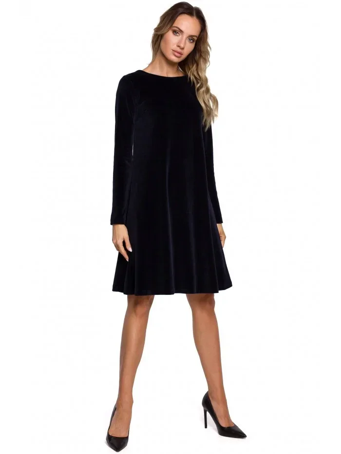 M566 Sametové šaty uvolněného střihu - tmavě modré